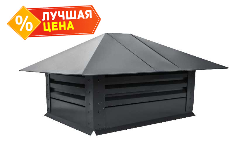 Дымник на трубу с жалюзи 520х390мм 0,5 Atlas с пленкой RAL 7024 мокрый асфальт