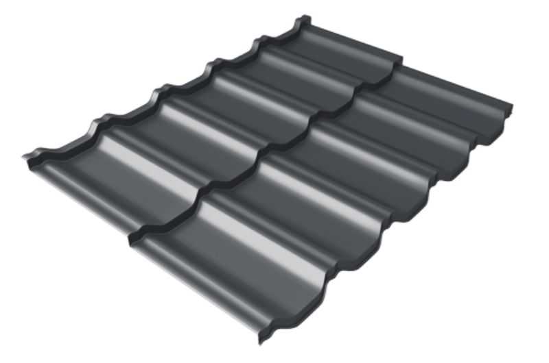 Металлочерепица Grand Line Kvinta Uno (Квинта Уно) 0,5 PurLite Мatt RAL 7024 Мокрый асфальт
