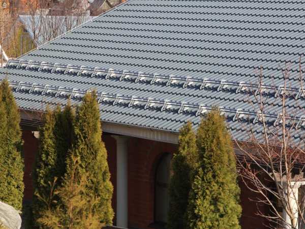 Снегозадержатели предотвращают неконтролируемый сход снега и наледи с кровли. Принцип действия снегозадержателя — порционное пропускание снега и наледи между кровлей и трубками.