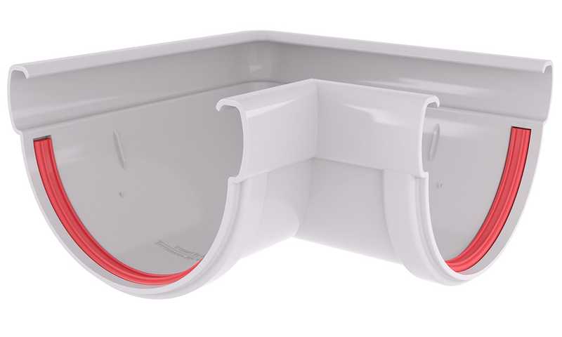 Угол желоба 90 град. 135 ПВХ Grand Line белый (RAL 9003)